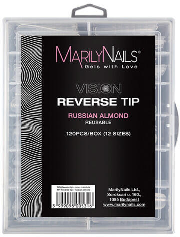 MarilyNails - REVERSE TIP - RUSSIAN ALMOND - 120db - 12 méret Újrahasználható Reverse tipek a Vision akrilzselé családhoz