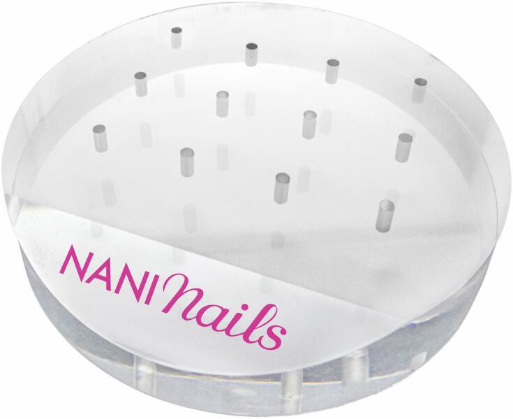 Műanyag csiszolófej- és bittartó állvány. rendkívül stabil, kiváló minőségű kialakítás 12 db csiszolófejhez átmérő: 9,5 cm